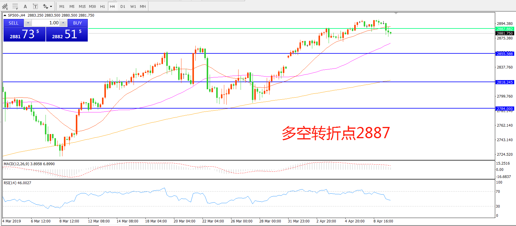多空转折点:2887.00