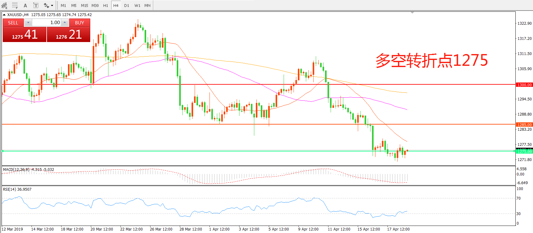 多空转折点:1275.00