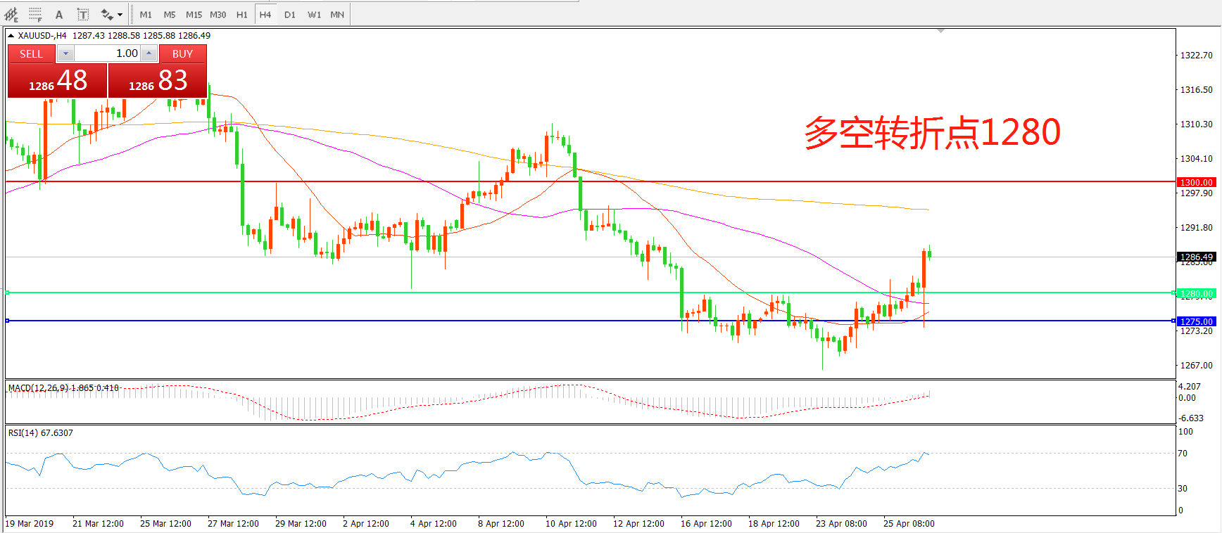 交易策略:在1280.00之上看涨,目标1295.00 1300.00