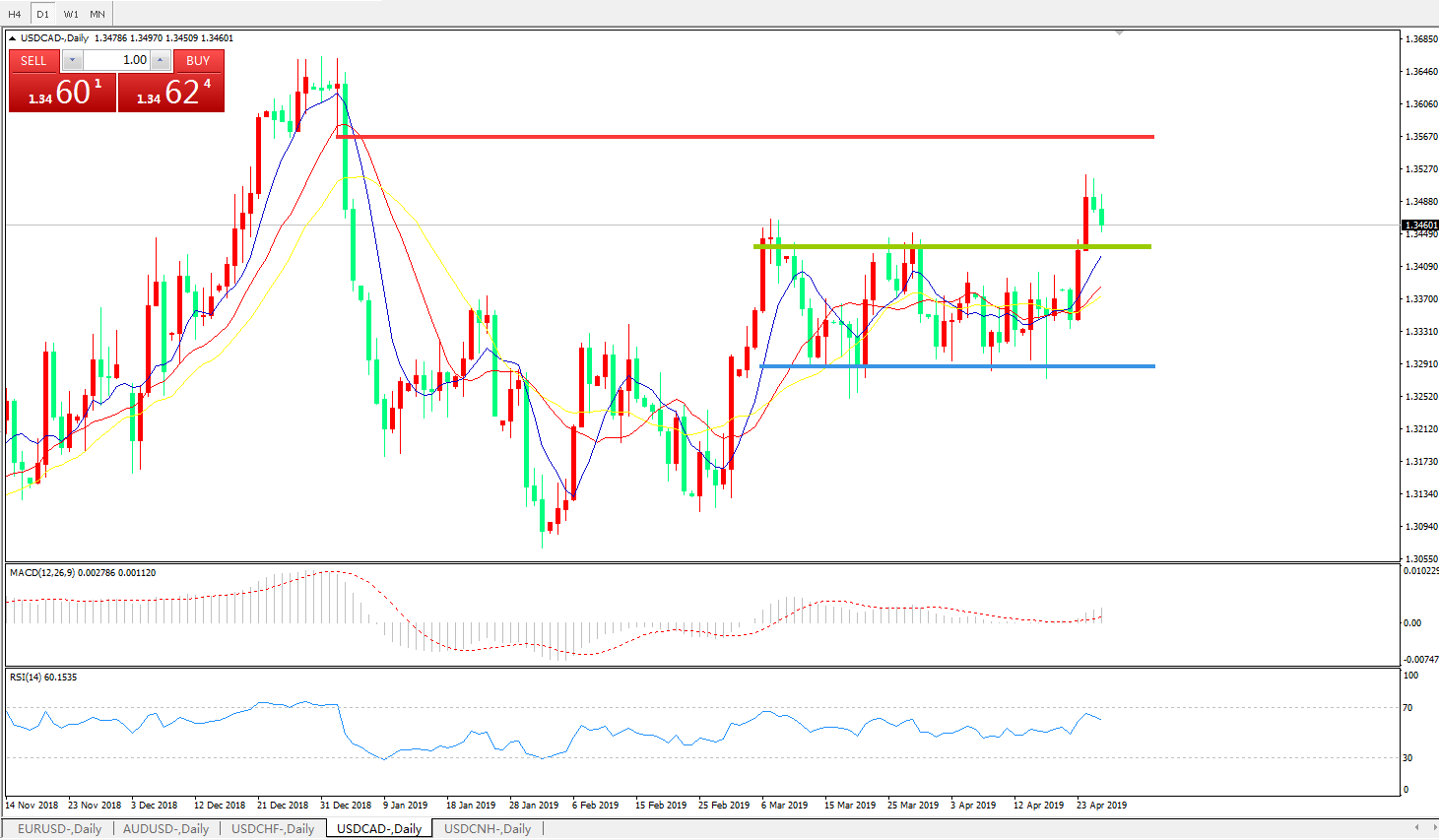 美元兑加元USDCAD    日线