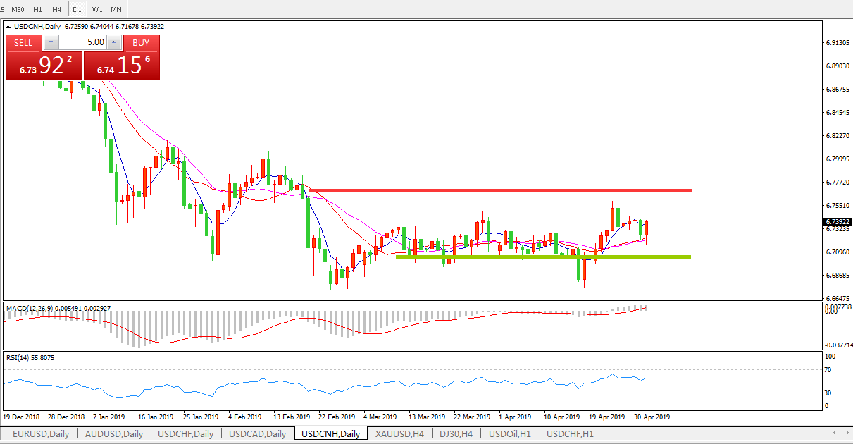 交易策略: 在6.6990之上,看涨,目标价位为6.7845,然后为6.8185。