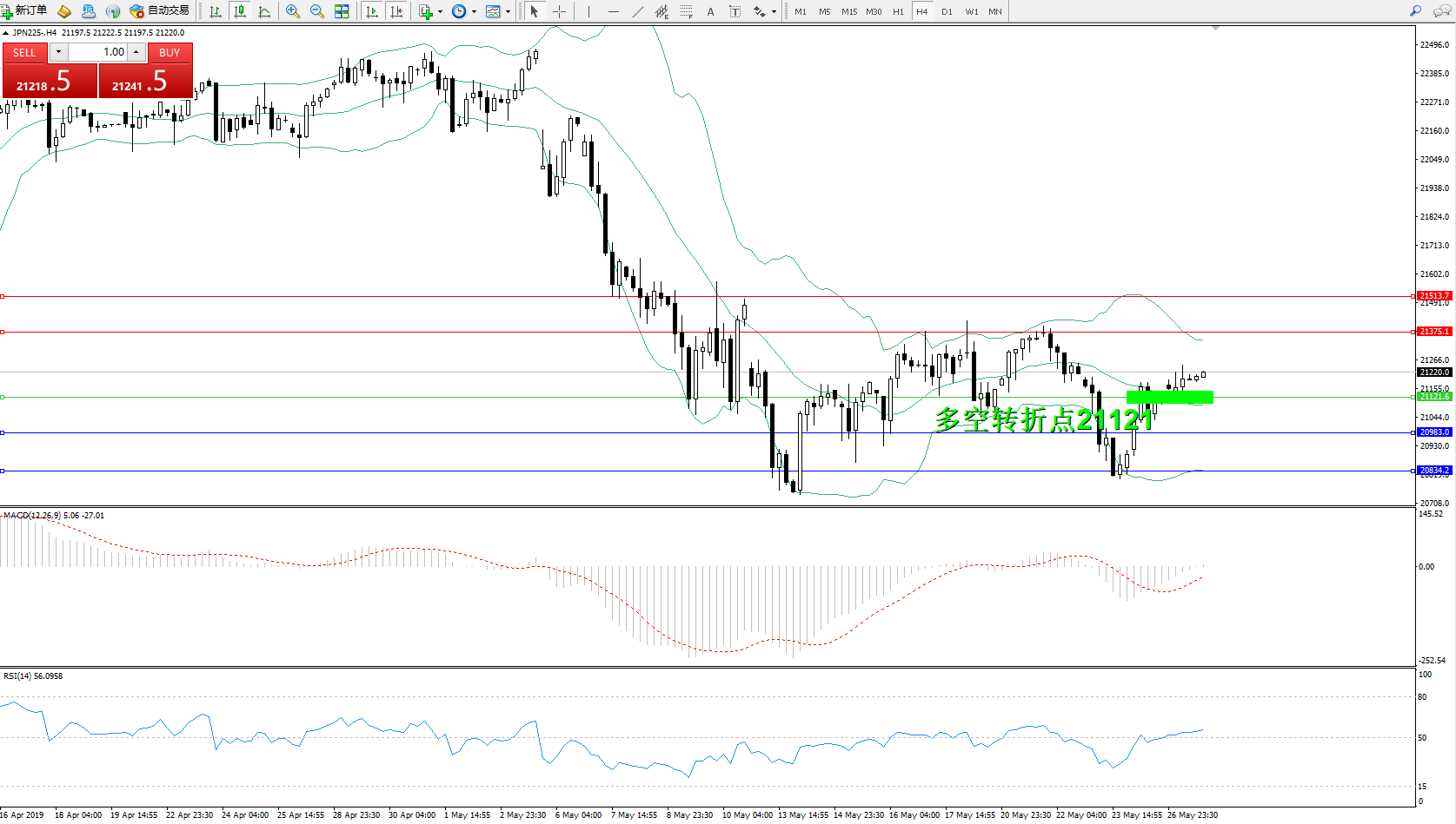 日经指数JPN225——4小时K线图: