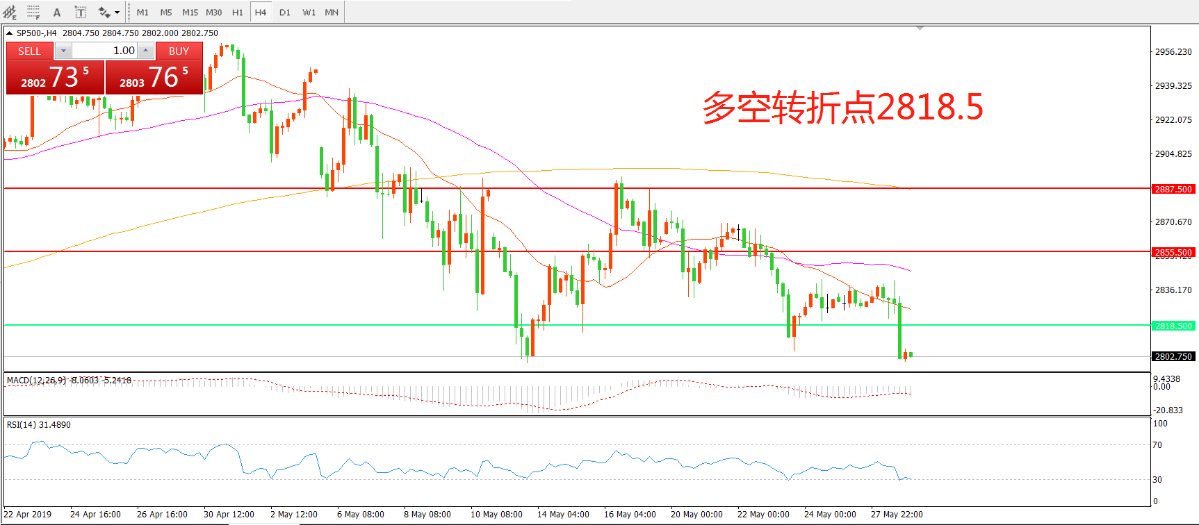 多空转折点:2818.50