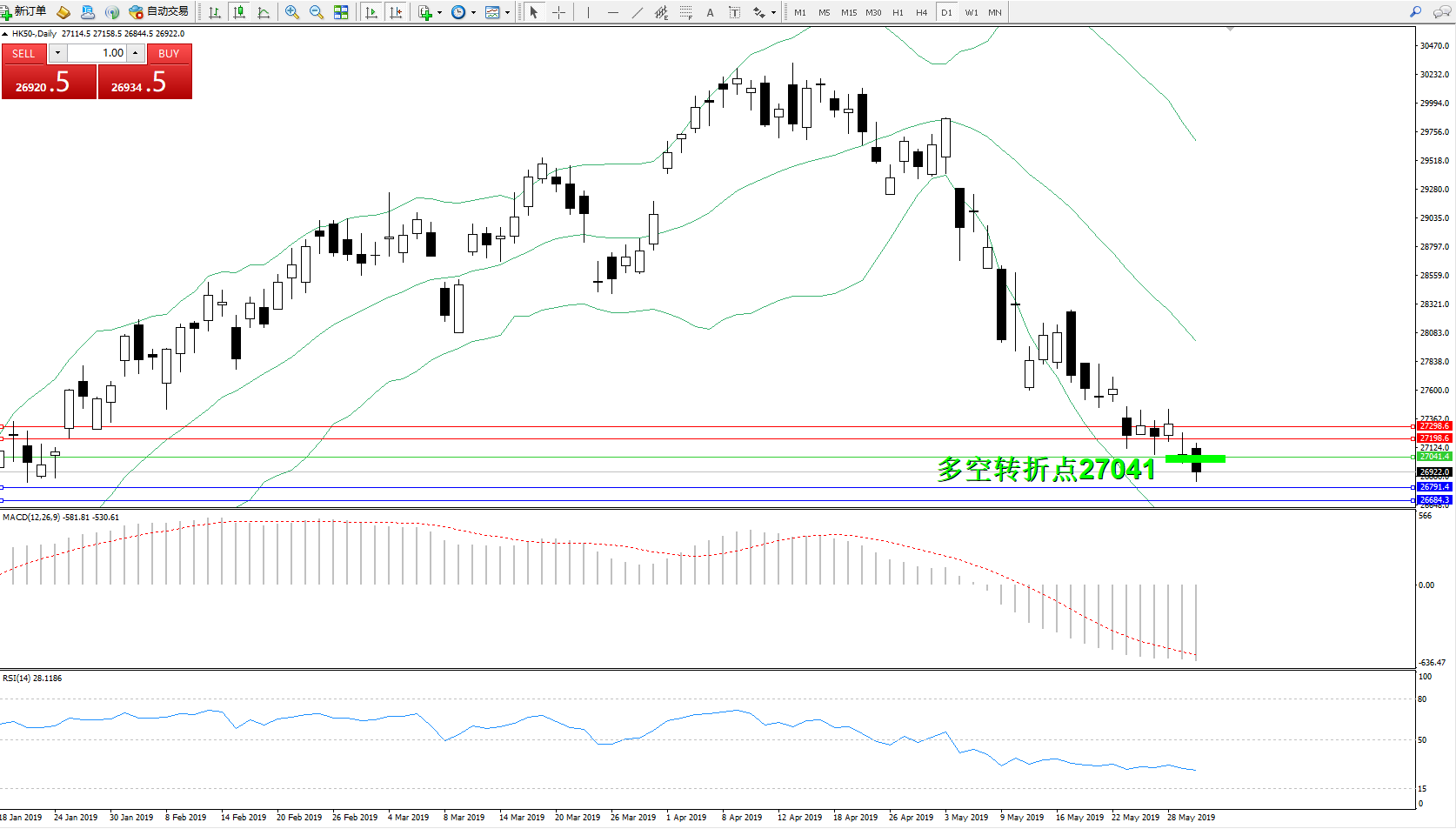 交易策略:27041下方看跌,目标26791、26684
