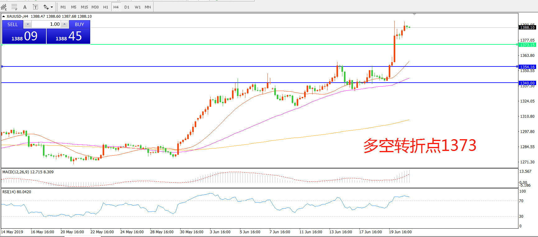 多空转折点:1373.00
