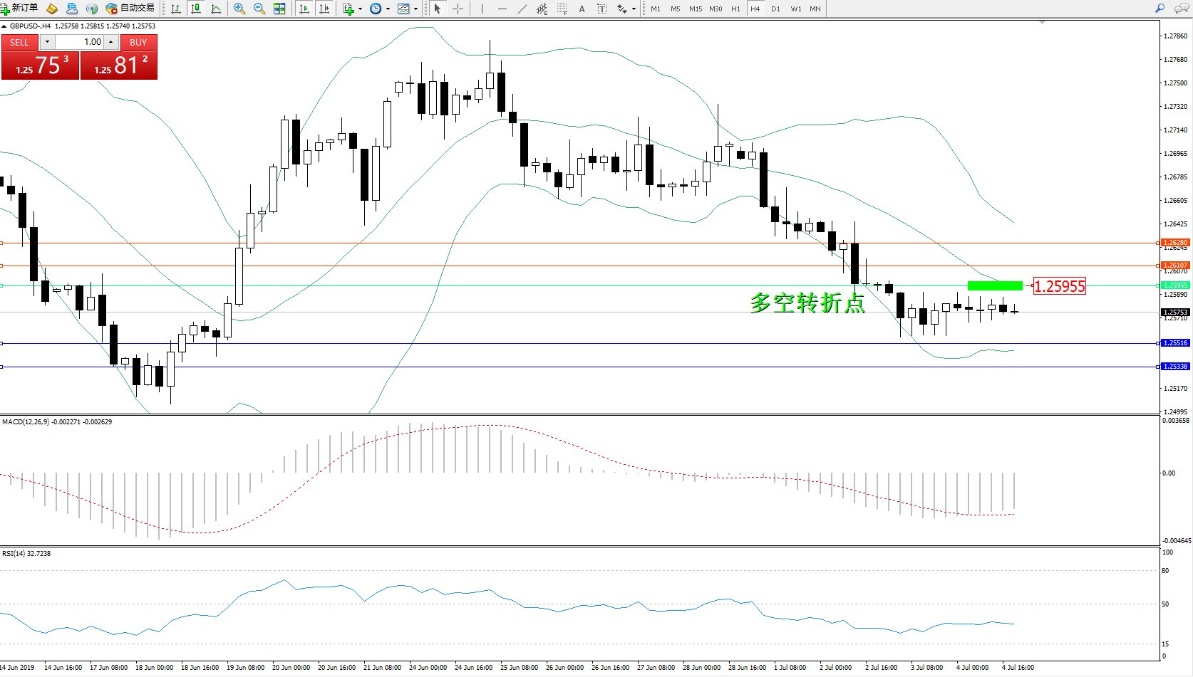 英镑美元GBPUSD ——4小时K线图显示: