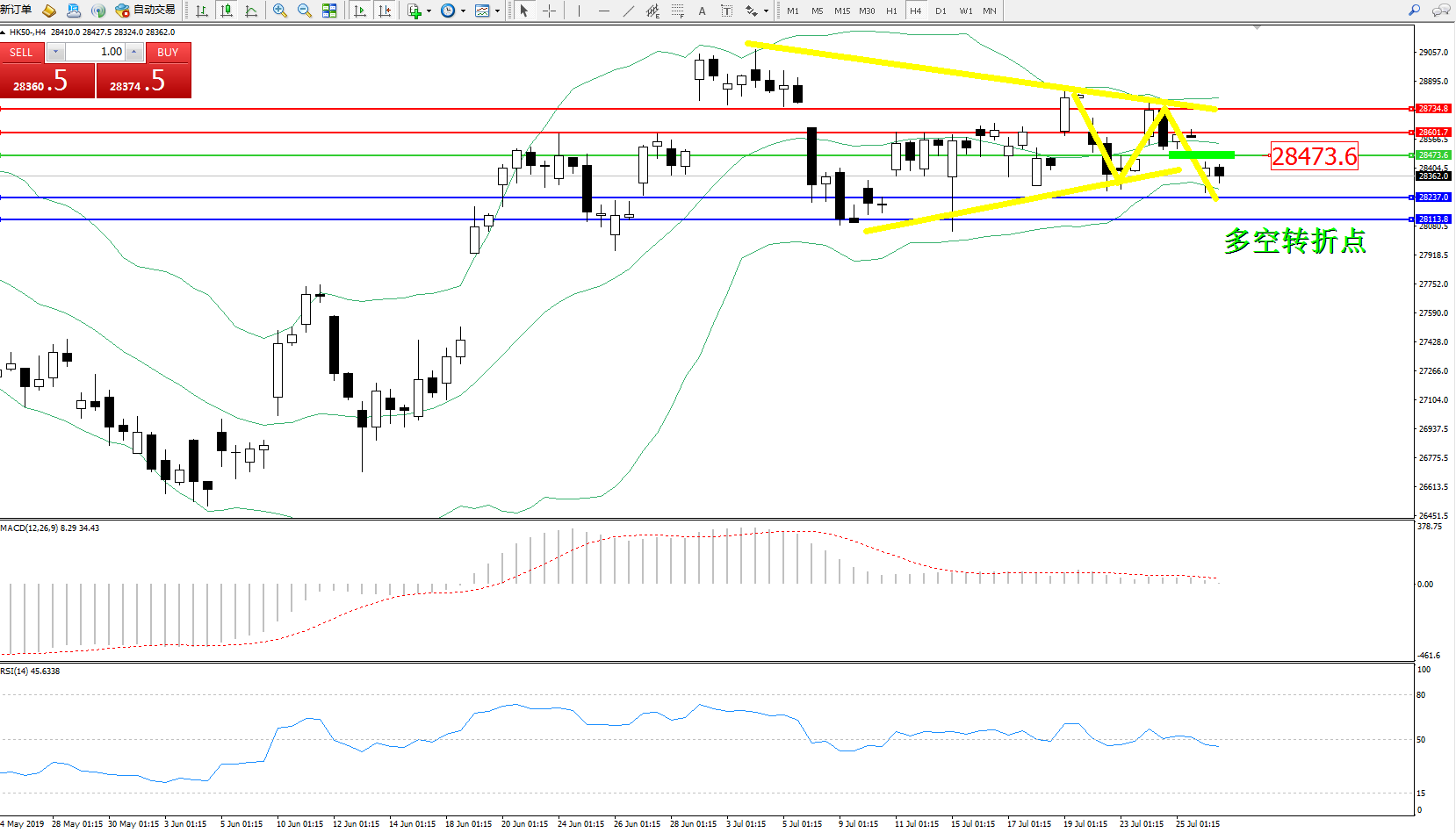 恒指HK50 ——4小时K线图显示: