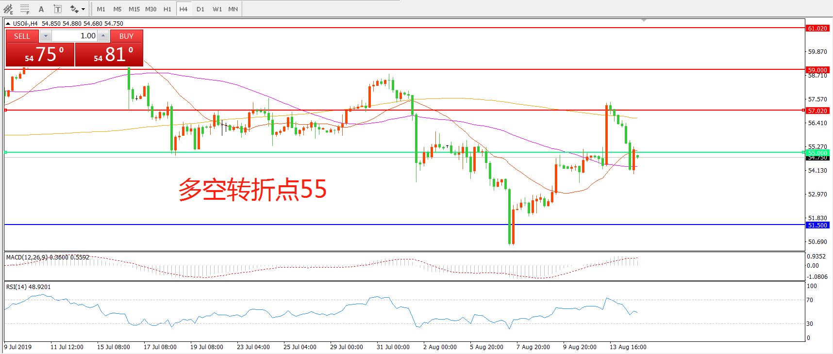 多空转折点:55.00