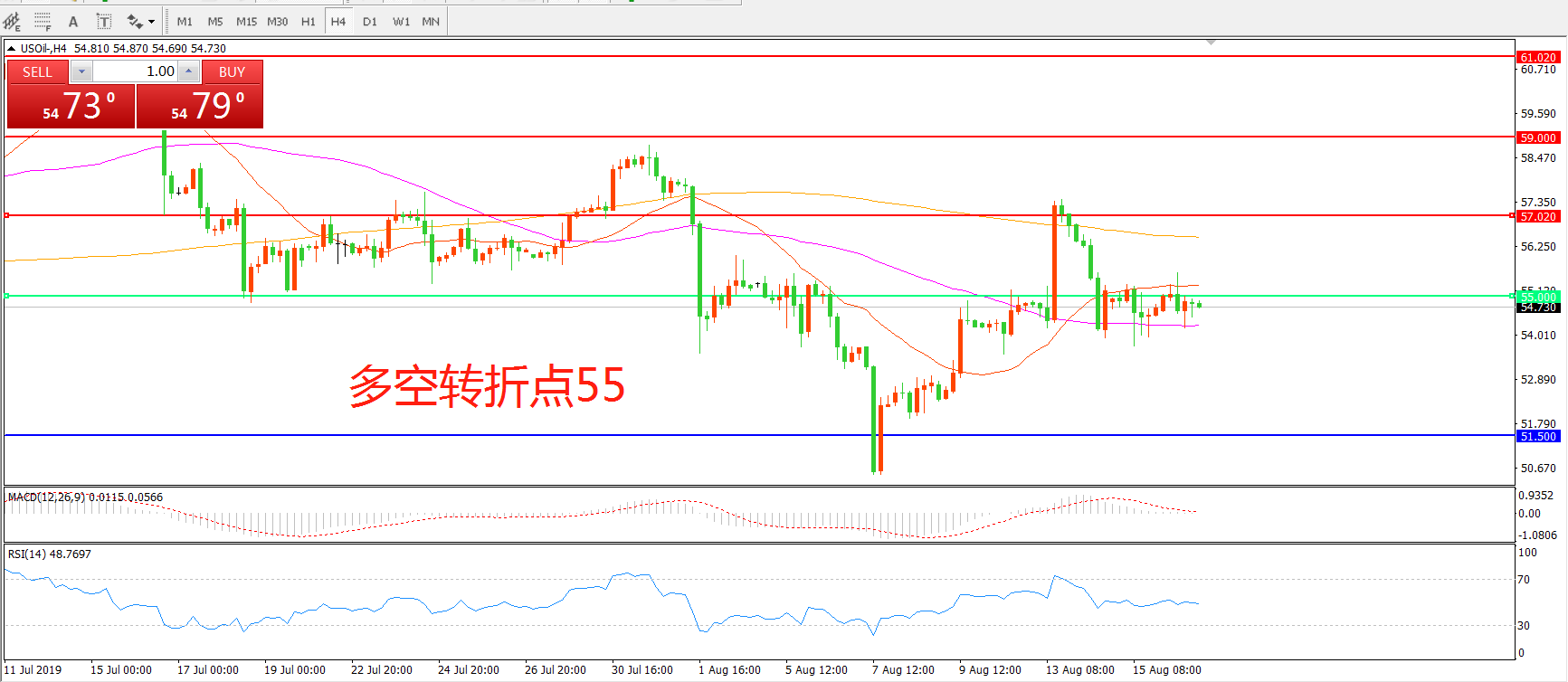 多空转折点:55.00