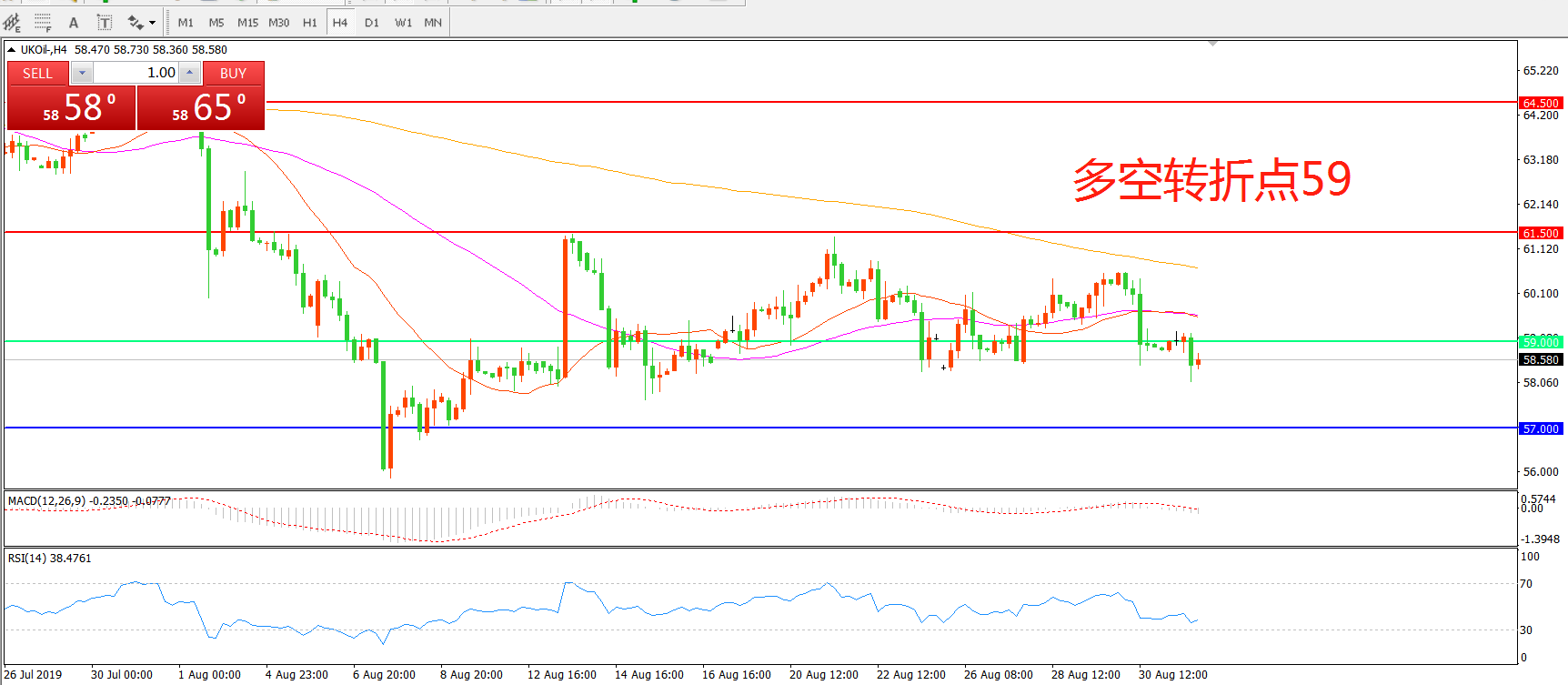 交易策略:在59.00之下看跌,目标57.00   53.00