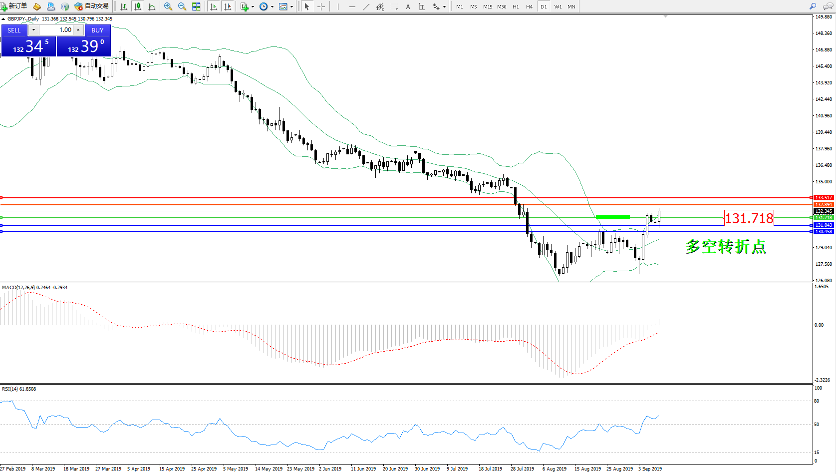 交易策略:131.718上方看涨,目标132.894、133.517
