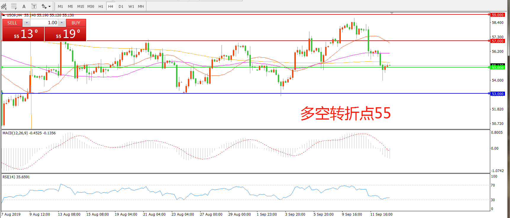 多空转折点:55.00