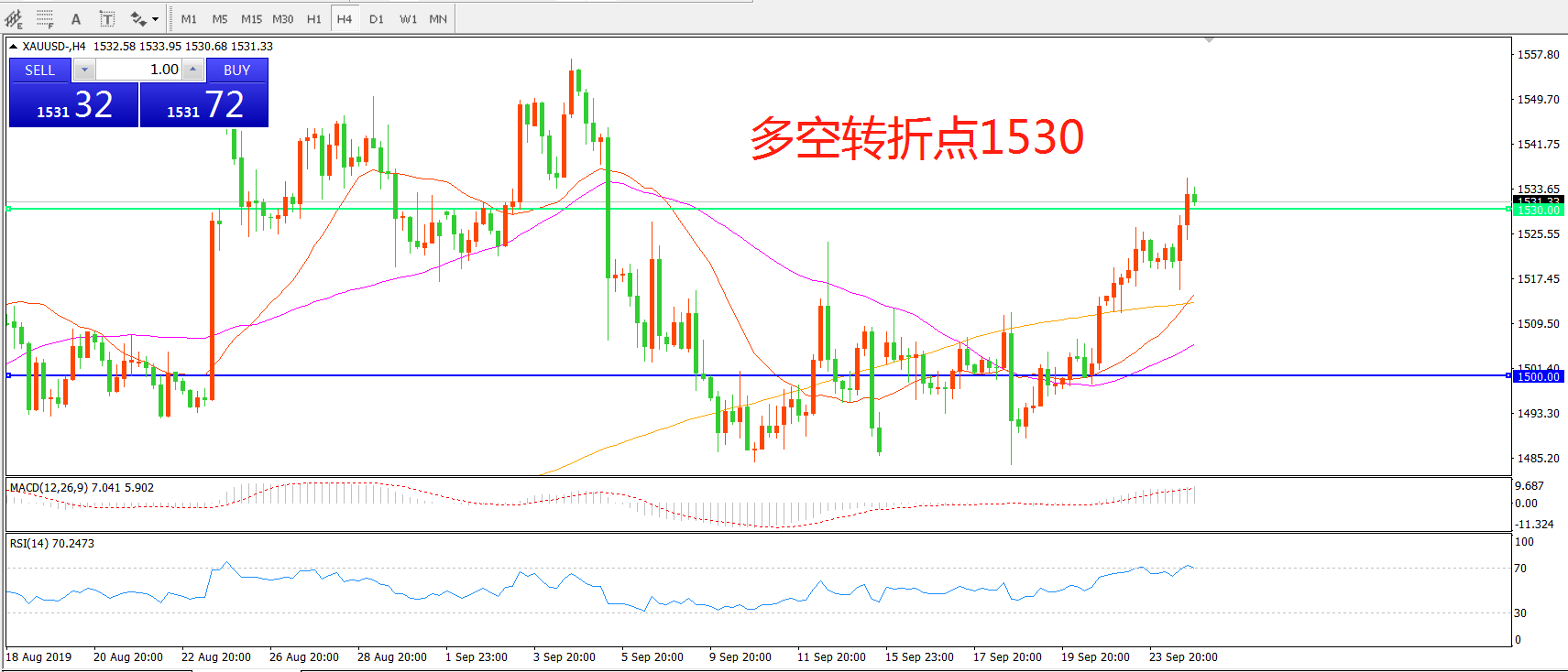 多空转折点:1530.00