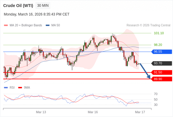 在 96.55 之下,看跌,目标价位为 91.50 ,然后为 89.90 。