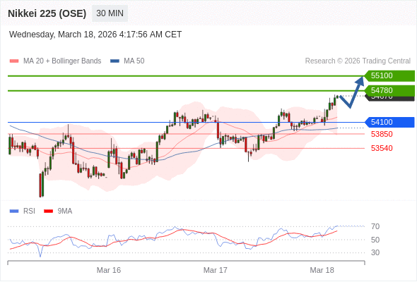 在 54100 之上,看涨,目标价位为 54780 ,然后为 55100 。