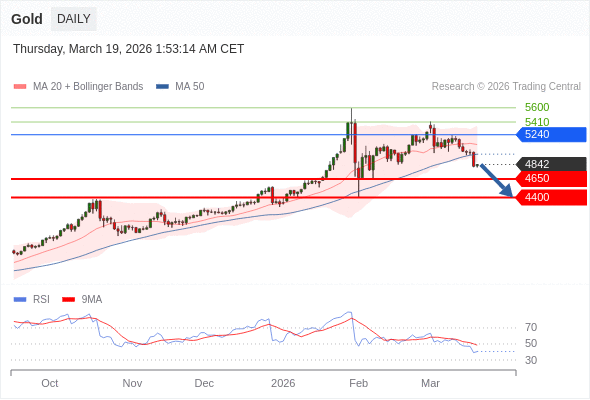 在 5240 之下,看跌,目标价位为 4650 ,然后为 4400 。