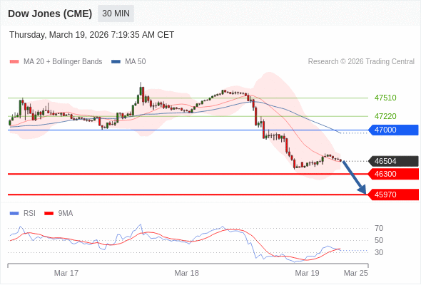 在 47000 之下,看跌,目标价位为 46300 ,然后为 45970 。