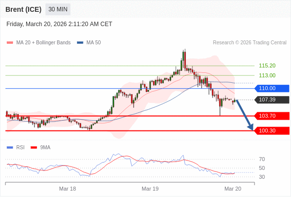 交易策略: 在 110.00 之下,看跌,目标价位为 103.70 ,然后为 100.30 。