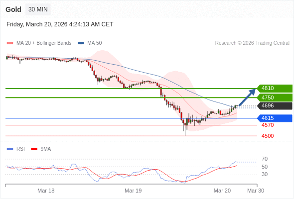 在 4615 之上,看涨,目标价位为 4750 ,然后为 4810 。