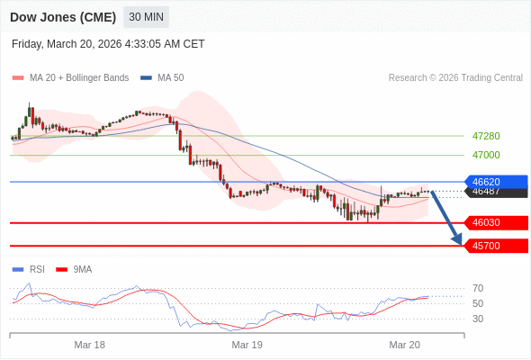 在 46620 之下,看跌,目标价位为 46030 ,然后为 45700 。