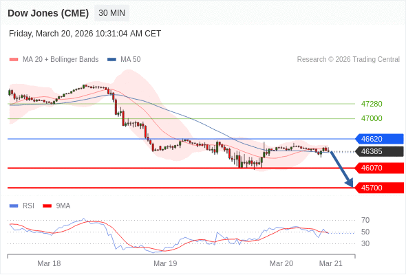 在 46620 之下,看跌,目标价位为 46070 ,然后为 45700 。