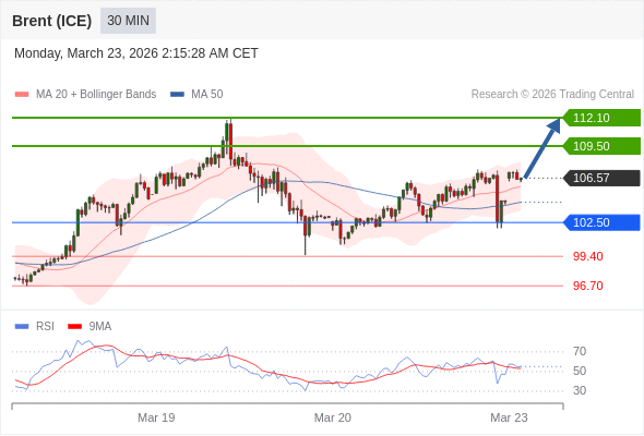 在 102.50 之上,看涨,目标价位为 109.50 ,然后为 112.10 。