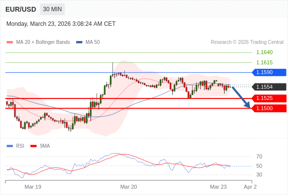 在 1.1590 之下,看跌,目标价位为 1.1525 ,然后为 1.1500 。