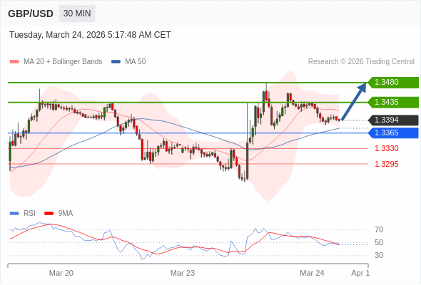 在 1.3365 之上,看涨,目标价位为 1.3435 ,然后为 1.3480 。