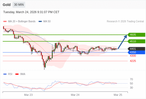 在 4350 之上,看涨,目标价位为 4510 ,然后为 4605 。