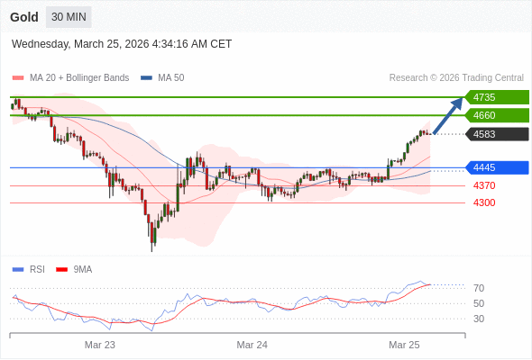 交易策略: 在 4445 之上,看涨,目标价位为 4660 ,然后为 4735 。