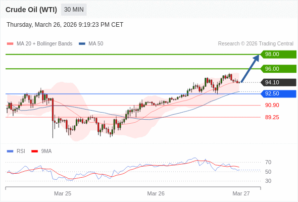 在 92.50 之上,看涨,目标价位为 96.00 ,然后为 98.00 。