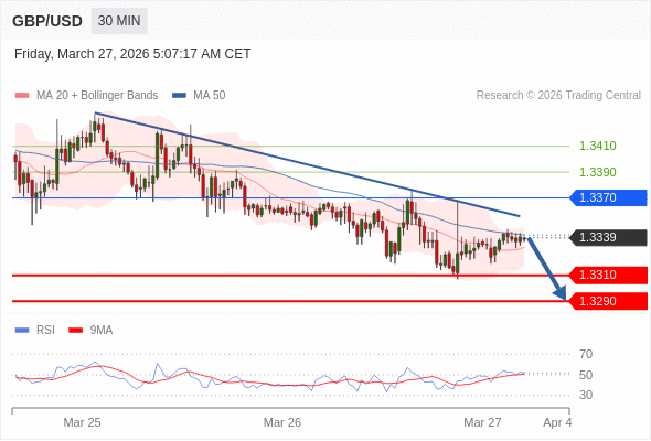 英镑/美元 当日内: 短期关键阻力位在1.3370。