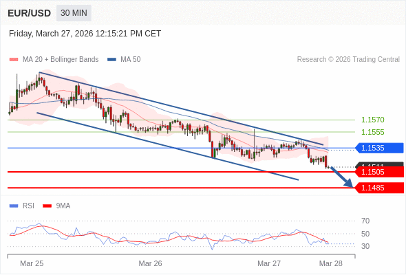 在 1.1535 之下,看跌,目标价位为 1.1505 ,然后为 1.1485 。