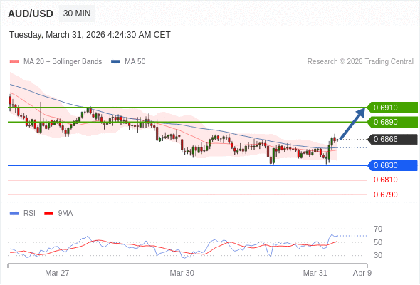在 0.6830 之上,看涨,目标价位为 0.6890 ,然后为 0.6910 。