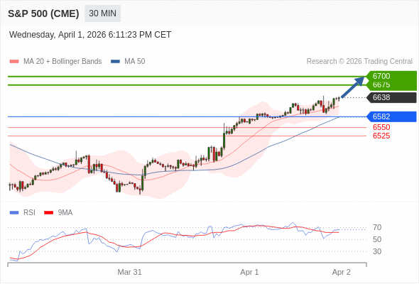 在 6582 之上,看涨,目标价位为 6675 ,然后为 6700 。