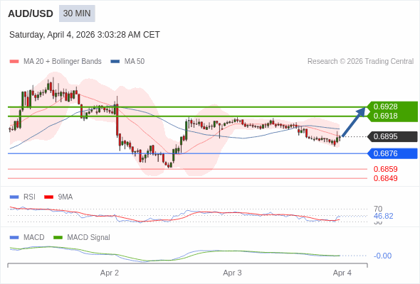 替代方案: 在0.6876以下,期待0.6859和0.6849。