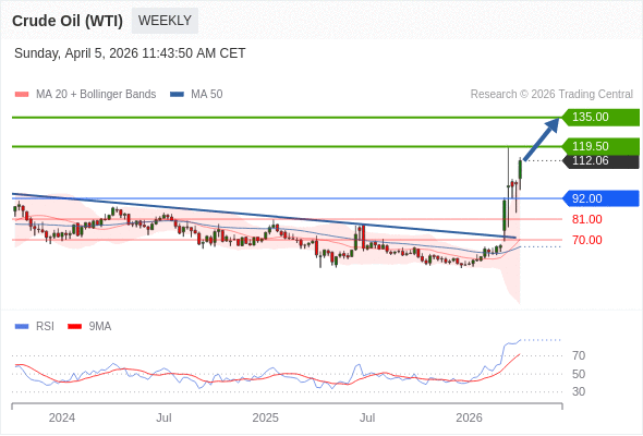 在 92.00 之上,看涨,目标价位为 119.50 ,然后为 135.00 。
