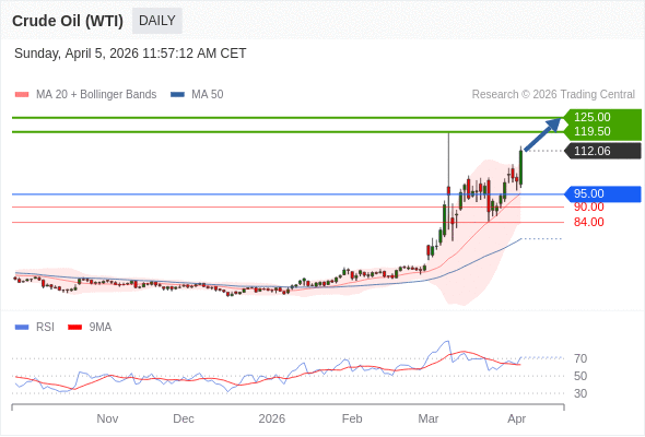 交易策略: 在 95.00 之上,看涨,目标价位为 119.50 ,然后为 125.00 。