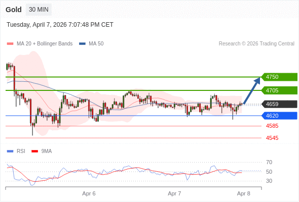 在 4620 之上,看涨,目标价位为 4705 ,然后为 4750 。
