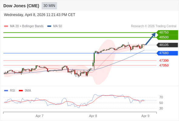 在 47680 之上,看涨,目标价位为 48500 ,然后为 48750 。