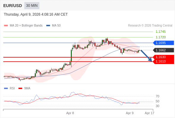 欧元/美元 当日内: 期待1.1630。