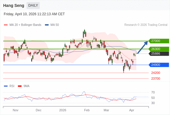 恒生指数 短线: 目标为26300。