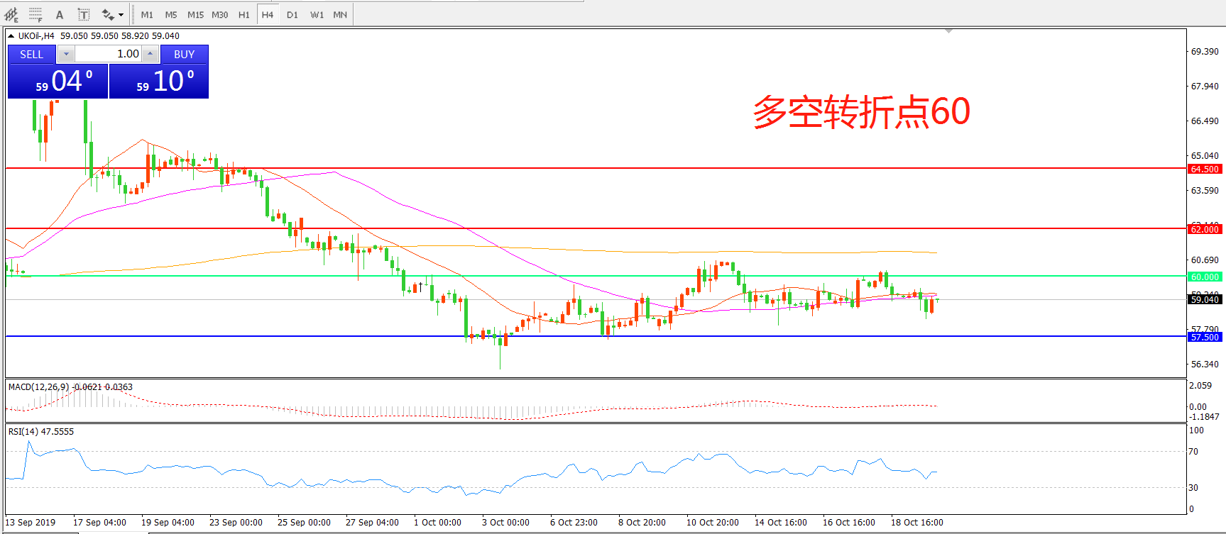 多空转折点:60.00