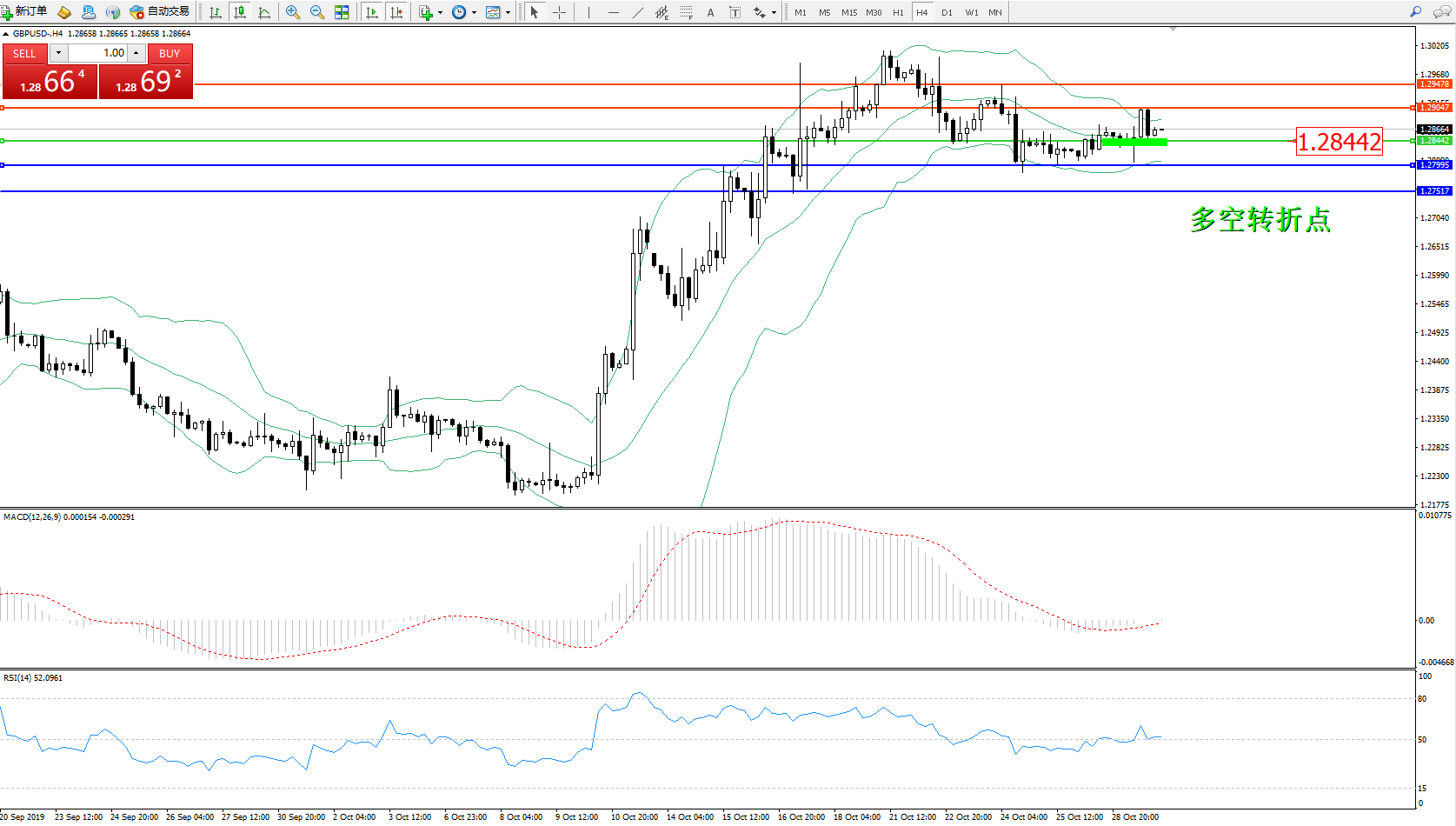 交易策略:1.28442上方看涨,目标1.29047、1.29478