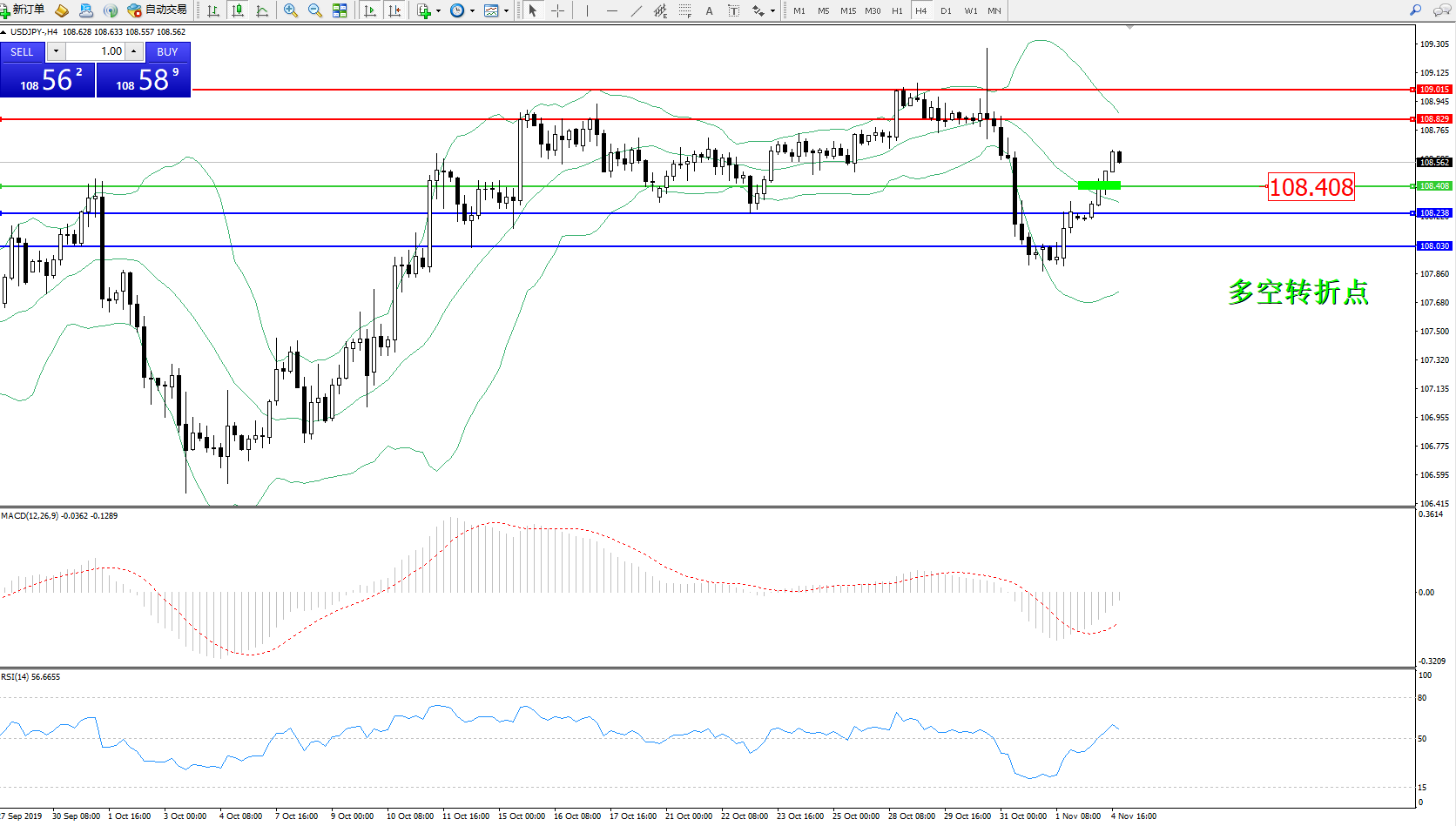 交易策略:108.408上方看涨,目标108.829、109.015
