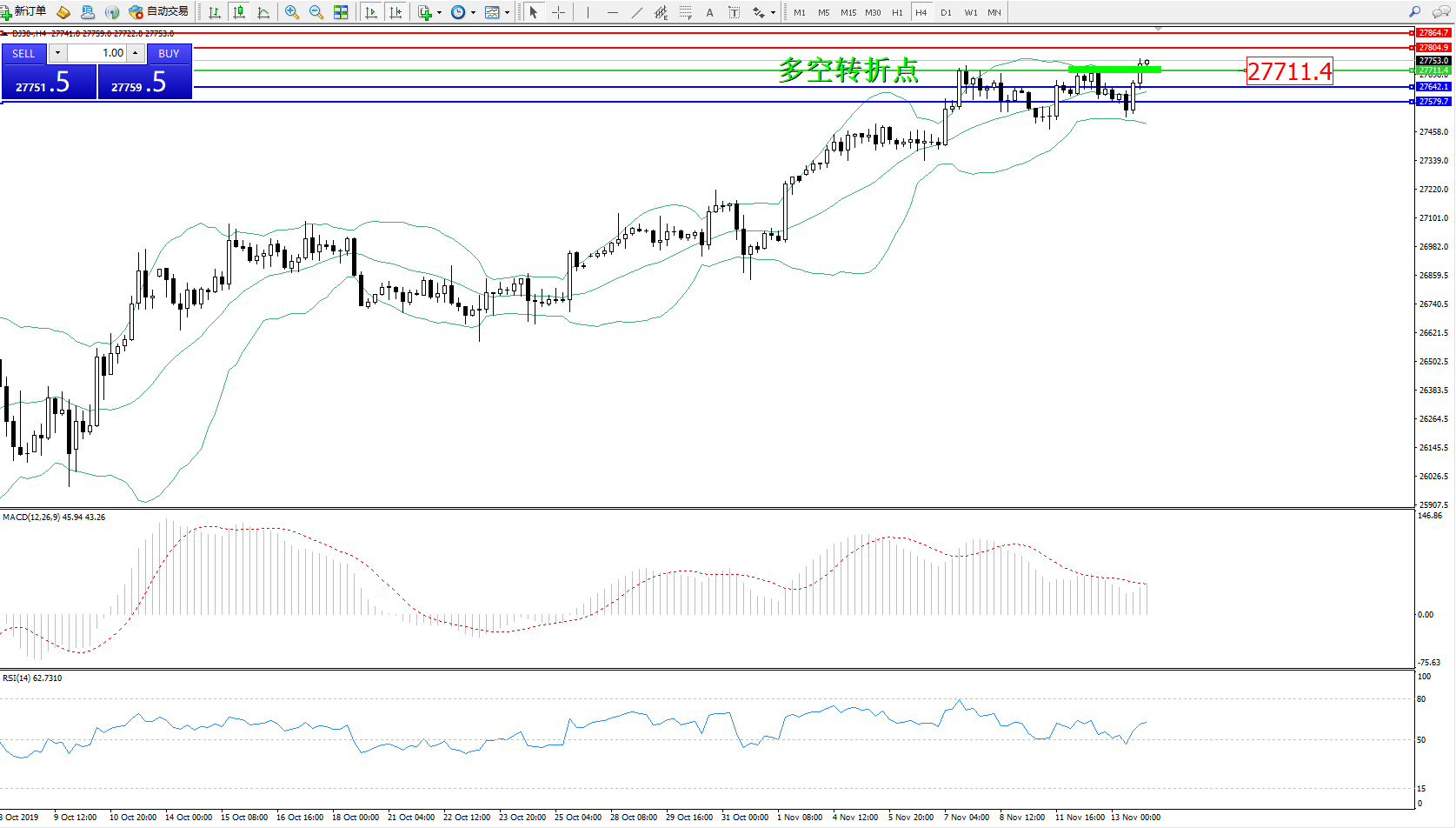 道琼斯指数1113日(周三)收盘上涨92.10点,涨幅0.33%,报27783.59点。美国CPI数据整体好坏参半,全球贸易局势利好。美债收益率普遍下跌;30年期美债收益率跌超7个基点,现报2.343%。美联储主席鲍威尔:与过去相比,美联储没有降息空间,就业市场没有释放过热的信号,美国经济能很好的应对更低的失业率。