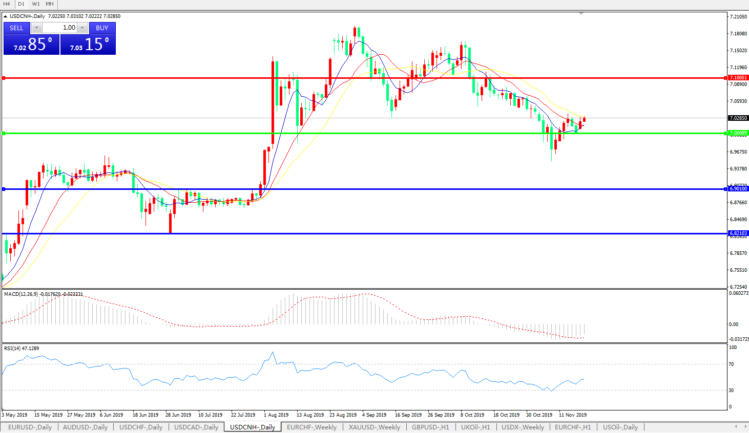 交易策略: 在7.0000之上,看涨,目标价位为7.1000,然后为7.2000。