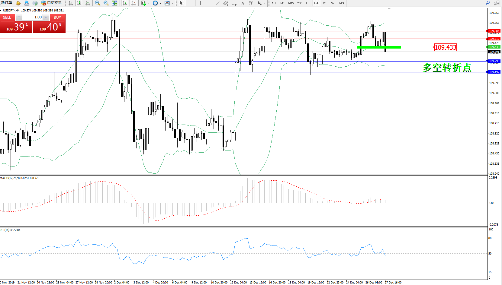 交易策略:109.433下方看跌,目标109.299109.197