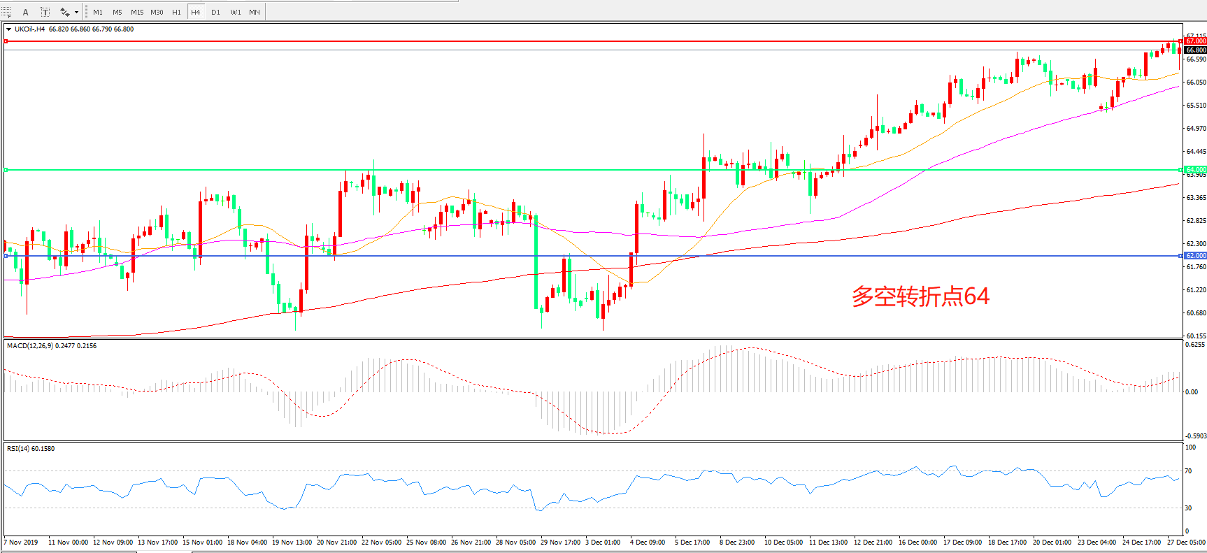 交易策略:在64.00之上看涨,目标67.00    69.50