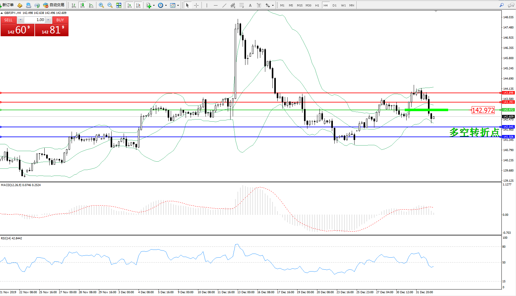 交易策略:142.972下方看跌,目标142.045、141.506